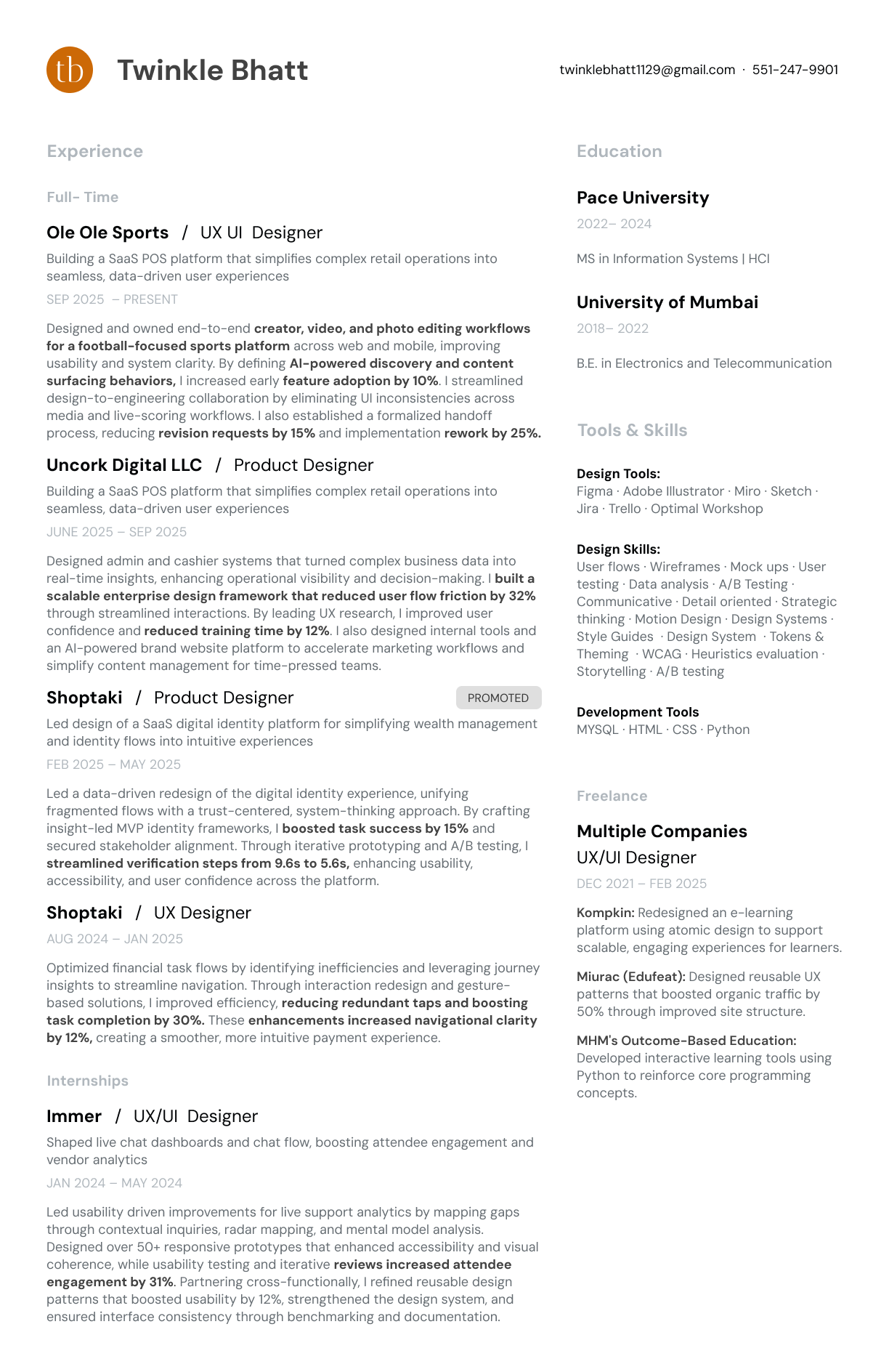 Designed admin and cashier systems that turned complex business data into real-time insights, enhancing operational visibility and decision-making. I built a scalable enterprise design framework that reduced user flow friction by 32% through streamlined interactions. By leading UX research, I improved user confidence and reduced training time by 12%. I also designed internal tools and an AI-powered brand website platform to accelerate marketing workflows and simplify content management for time-pressed teams.