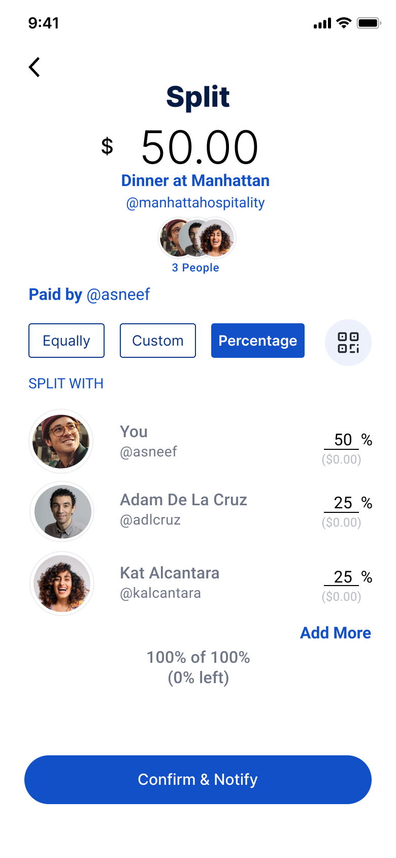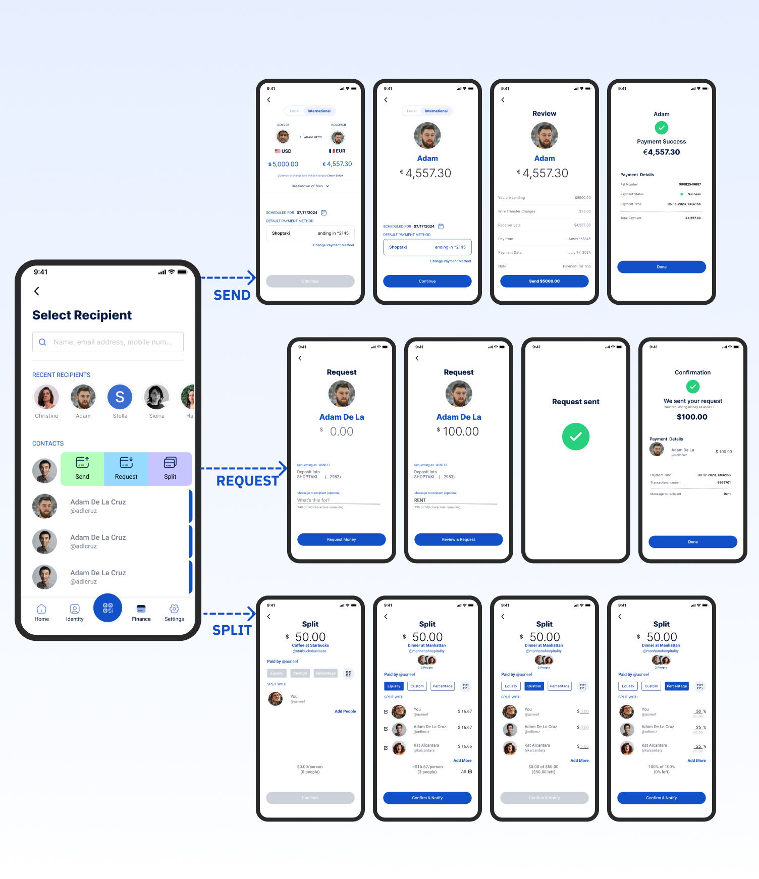 Implemented a unified multi-action payment hub that allows users to send, request, and split payments seamlessly within one screen. The redesigned flow eliminated unnecessary back-navigation, introduced real-time confirmations.