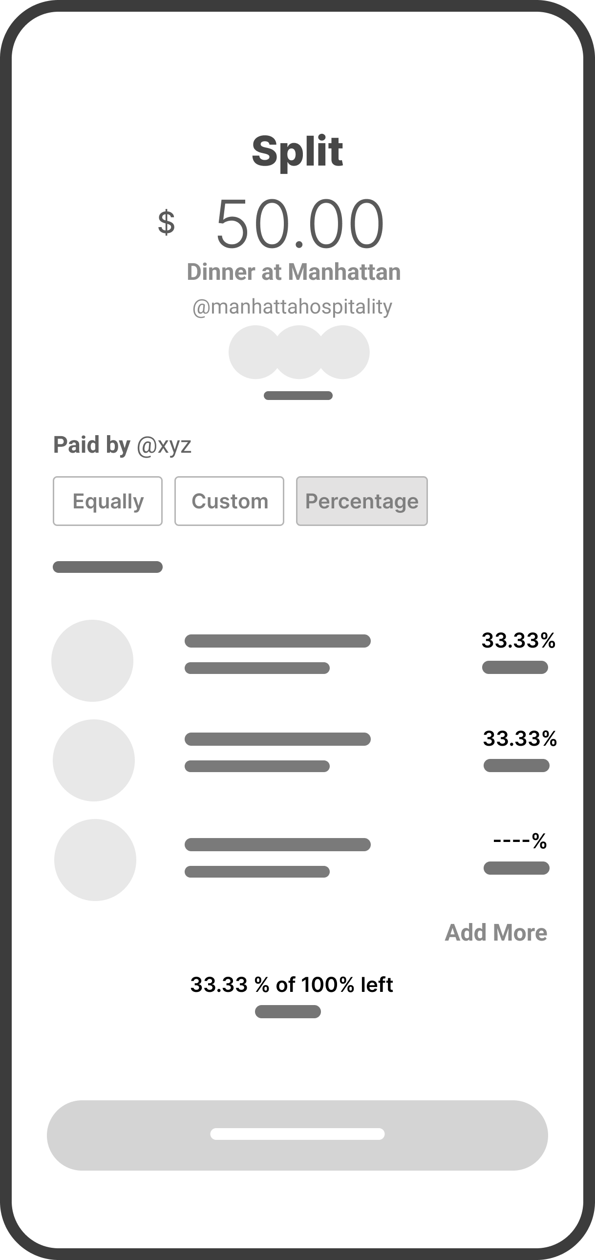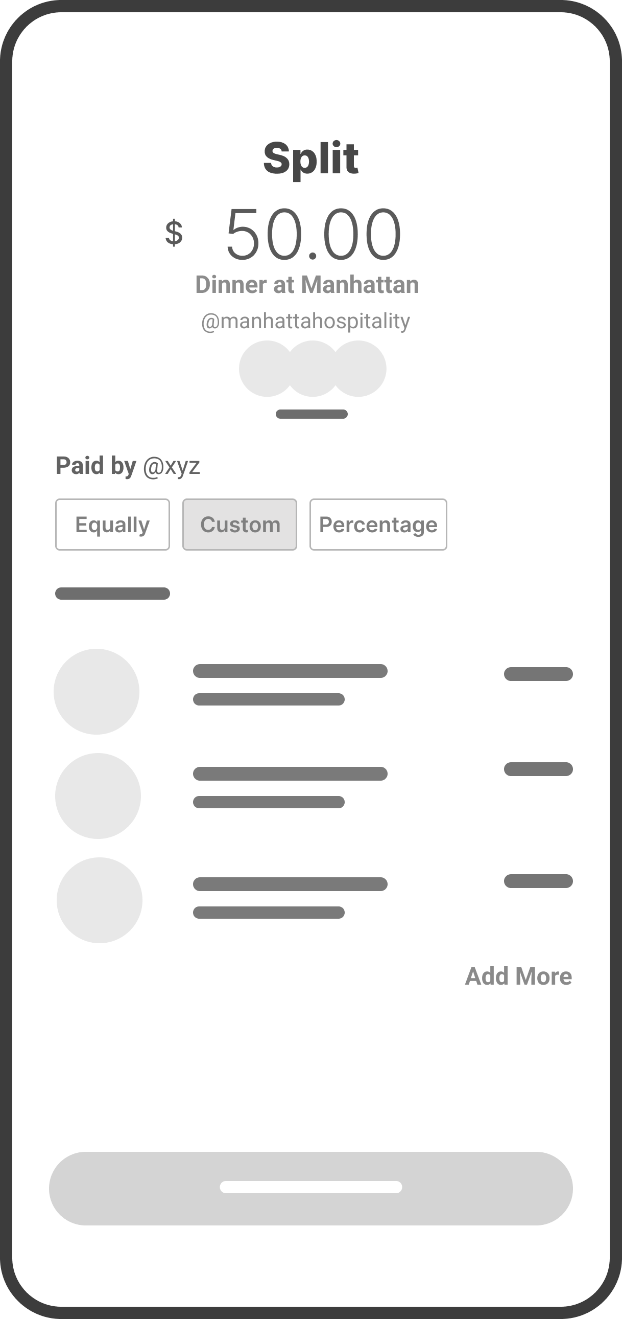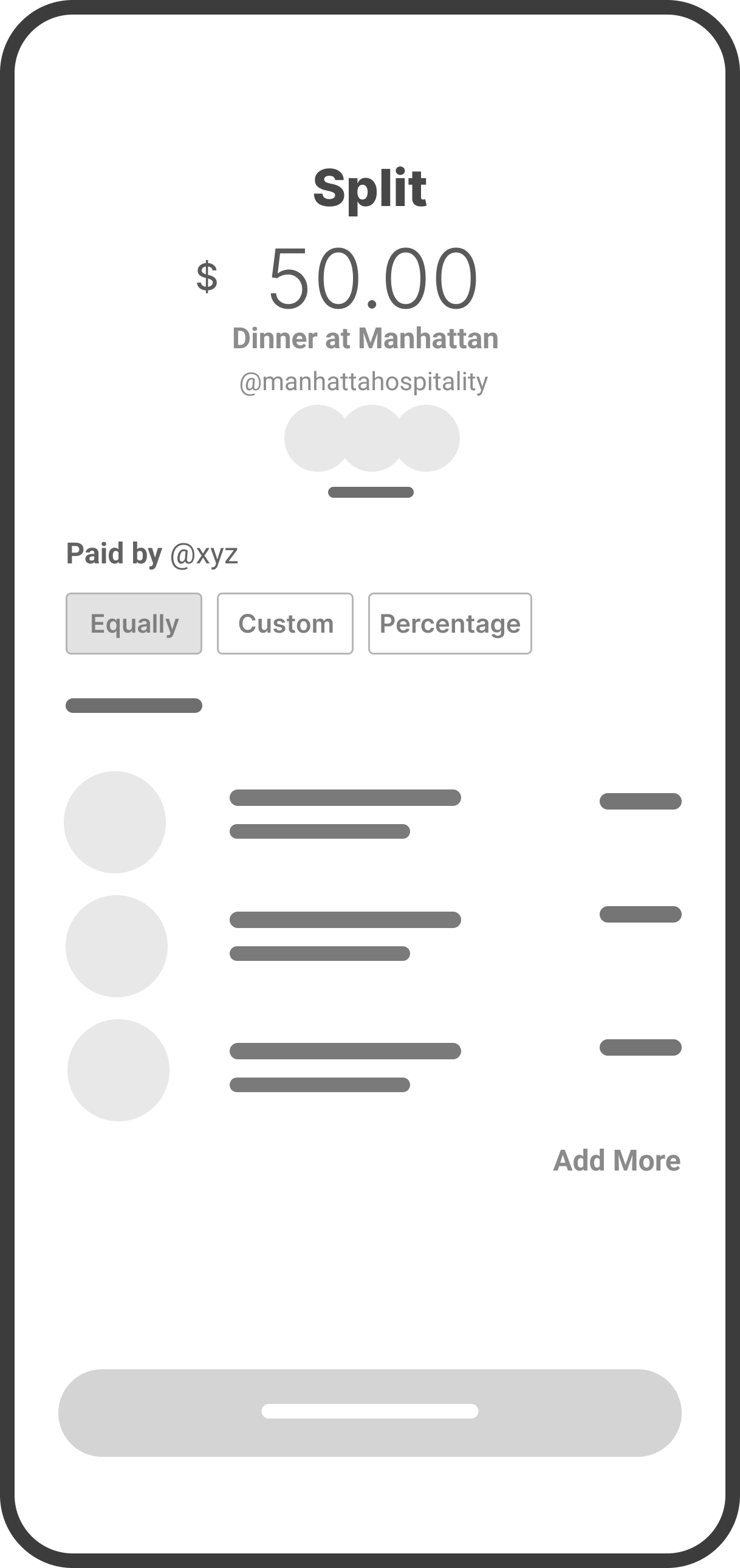 I like that it shows the contact list, but managing multiple actions like split and request means coming back here each time to do them individually.