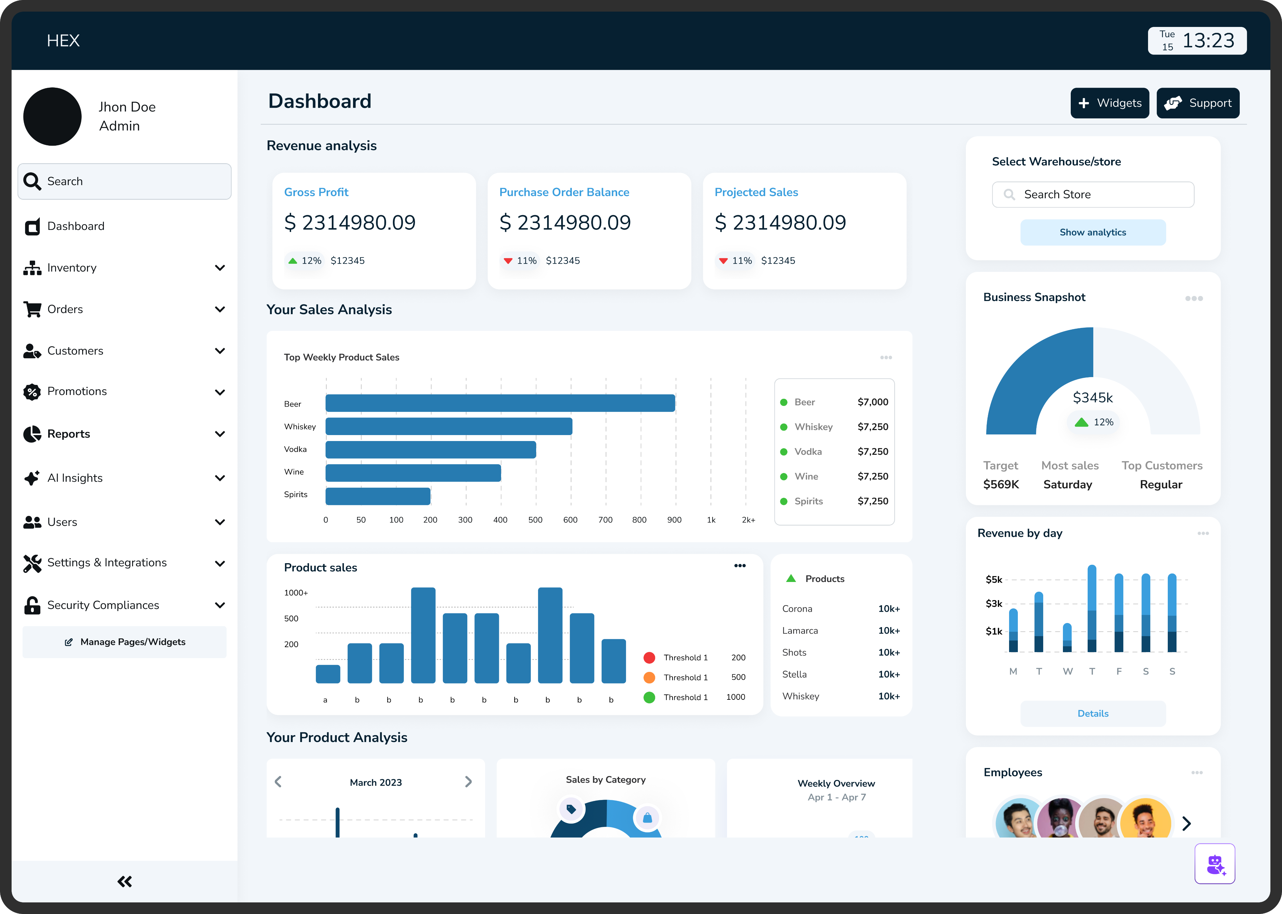 Store owners and admins struggled to manage fragmented tools for reporting, analytics, and inventory visibility.