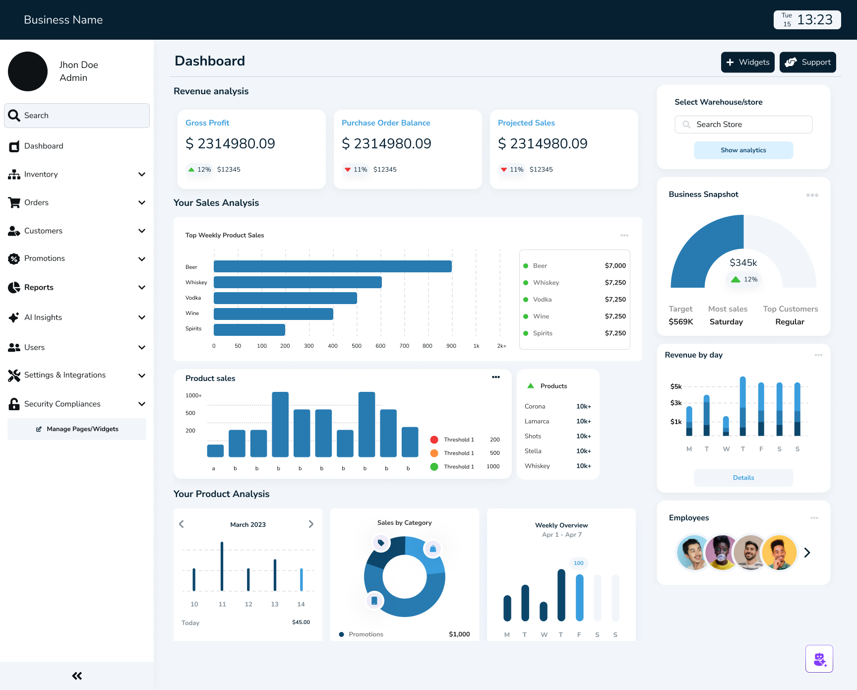 I needed to design a POS system that helped store owners stay compliant while monitoring operations in real time insights and less manual work in consideration with the inventory, reports and stock management.